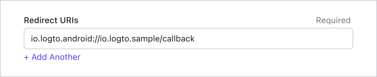 Let's switch to the Application details page of Logto Console. Add a Redirect URI io.logto.android://io.logto.sample/callback and click "Save changes".
